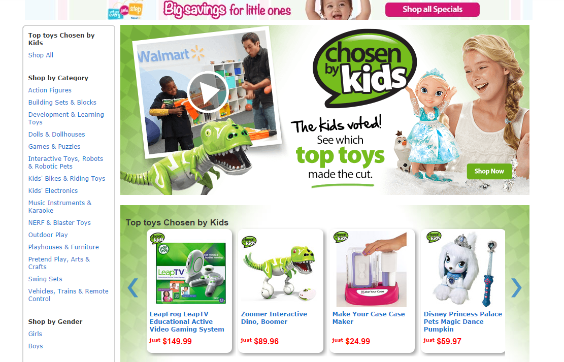 The section of the company’s website that has been developed for the top-20 toys list includes a marketing graphic that showcases a picture of a kid playing with one of the toys along with some other images of popular characters as well as the words “The kids voted! See which top toys made the cut.” Those words are presumably a call to action to parents beginning the process of researching their holiday gift selections to see what new toys resonated with children this year. All of the toys selected for the top-20 list are to be given prominent space within Walmart stores and given plenty of real estate online. In addition, the toys will feature a “Chosen by Kids” label in both the physical and digital space. For Walmart another benefit of this strategy is that it will be easier to ensure that the right toys are being purchased and stocked. As a result the retailer should miss out on fewer sales and limit to a greater degree inventory obsolescence, at least in the toy category.